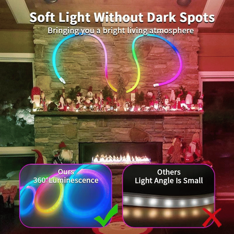 360-Degree Illumination : This neon lights strip offers 360-degree illumination, providing full, even light distribution from all angles. It ensures that your space is beautifully lit from every direction, enhancing your decor with a captivating glow.